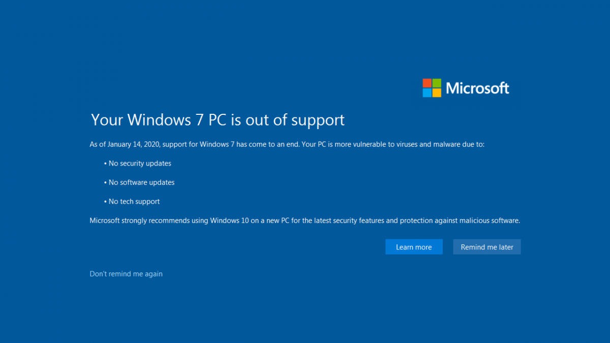 Over time, more and more software vendors volition stop supporting Windows vii.